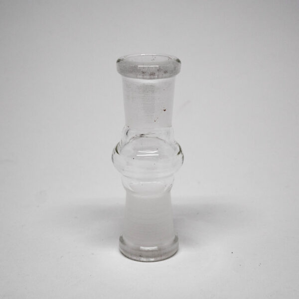 Szklana przejściówka posiadająca 2 złącza GonG 14,5 mm typu żeńskiego, która pozwala na połączenie ze soba 2 elementów wyposażonych w złącza GonG 14,5 mm typu męskiego.